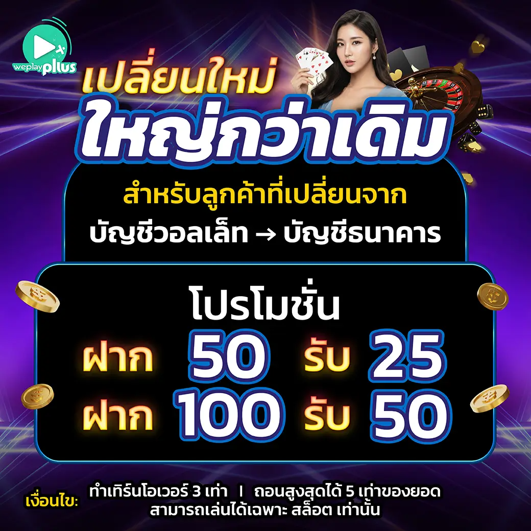 สวัสดีเพื่อนๆ ทุกคน! วันนี้เรามาดูกันดีกว่าว่า WePlayPlus มีโปรโมชั่นและโบนัสสุดพิเศษอะไรที่น่าสนใจบ้าง ที่จะช่วยเพิ่มความสนุกและโอกาสในการชนะให้กับทุกคน